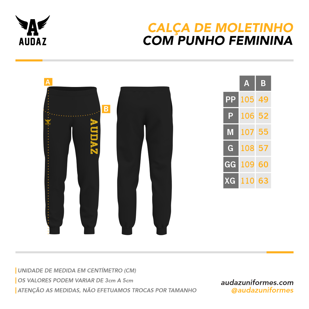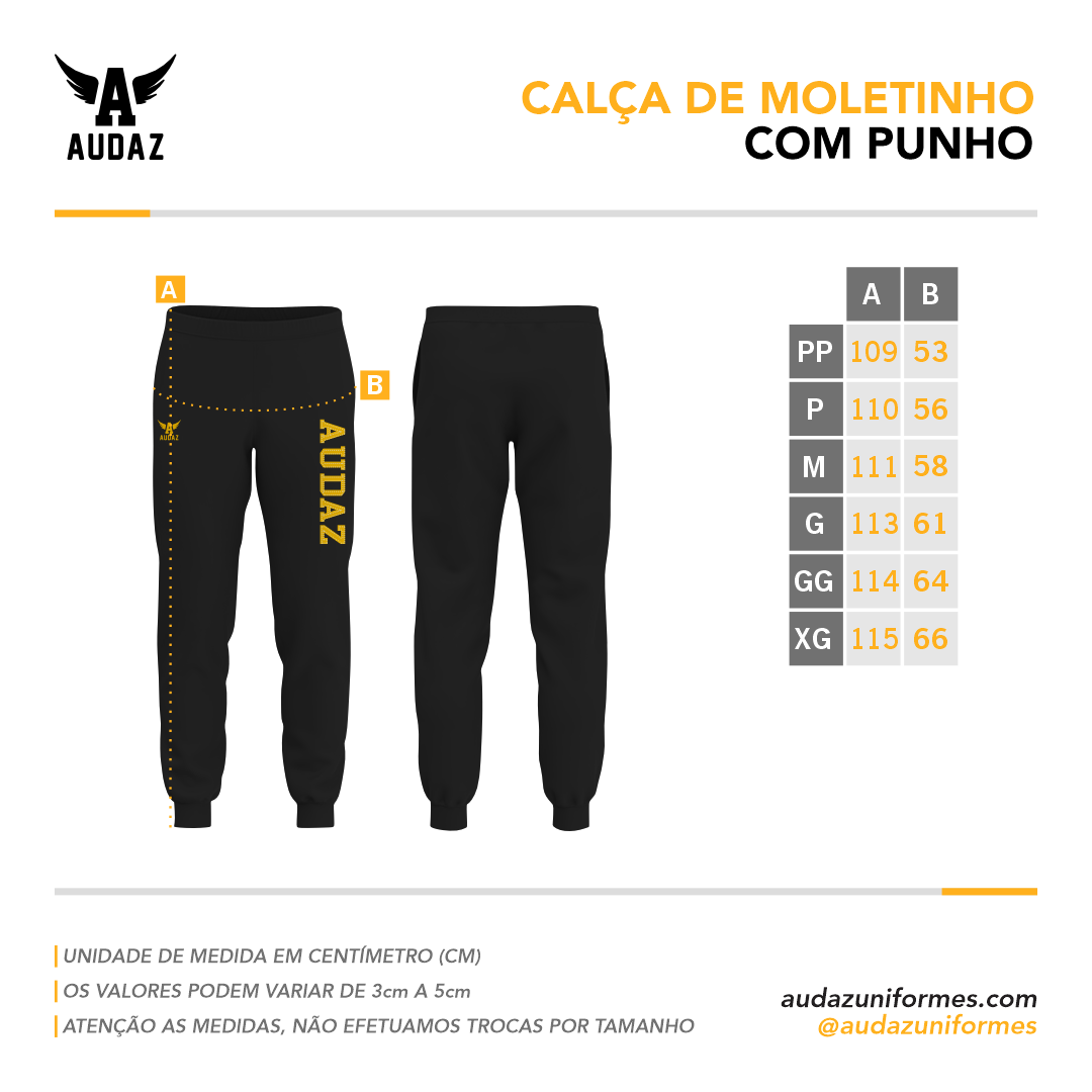A Calça de Moletinho personalizada combina a essência do conforto casual com um toque de praticidade. Disponível tanto com punho quanto sem punho.