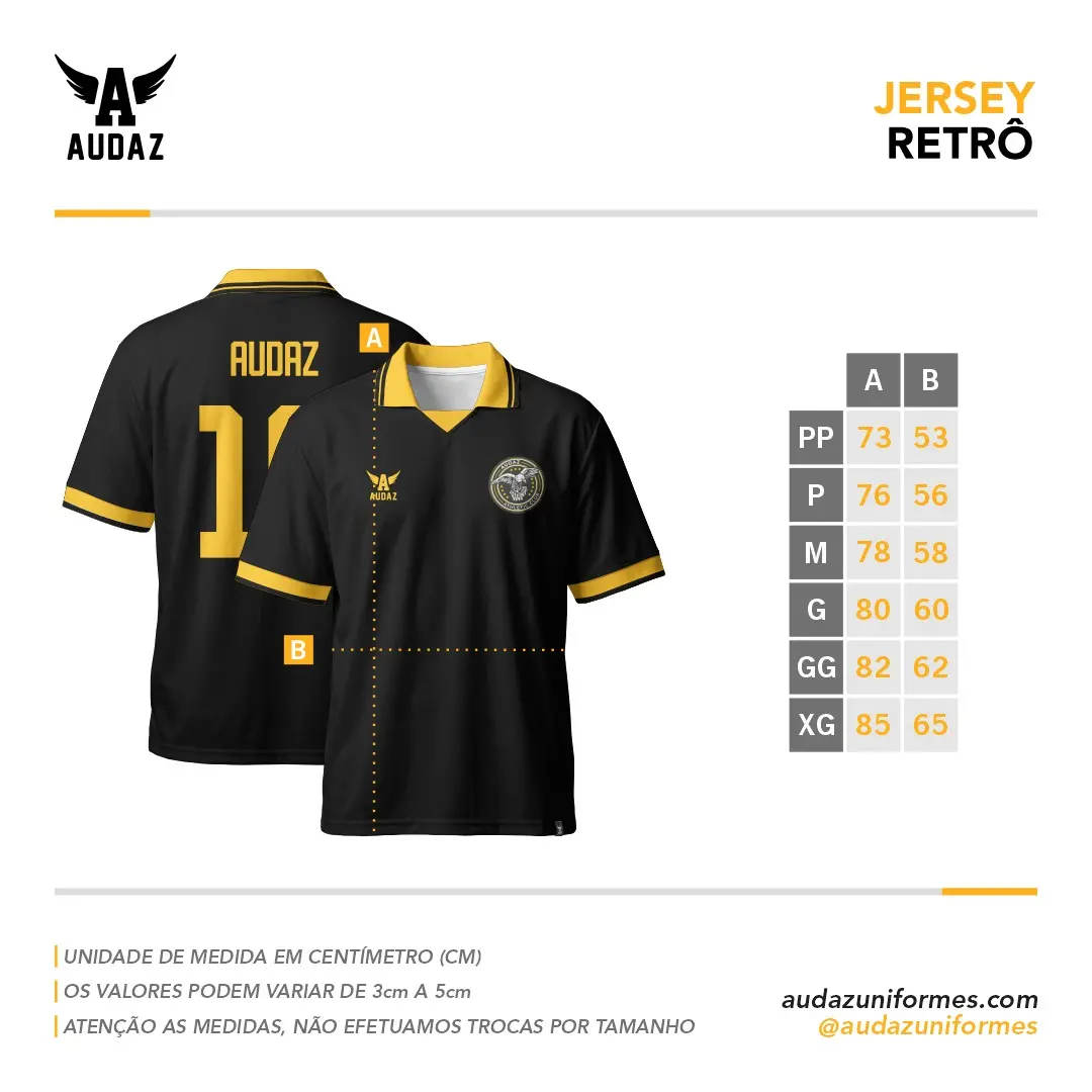 A Jersey Retrô da Audaz Uniformes resgata a essência das camisas clássicas do esporte, combinando o visual vintage com tecnologia atual. Com gola polo texturizada e acabamento refinado, é a escolha ideal para atléticas e equipes que querem carregar tradição sem abrir mão de performance.